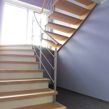 Obergeschoss: Erreichbar über eine stilvolle Massivholztreppe. Neben zwei Kinderzimmern und dem Elternschlafzimmer bietet ein separater Hobbyraum mit angrenzendem Abstellbereich flexiblen Raum für Kreativität.