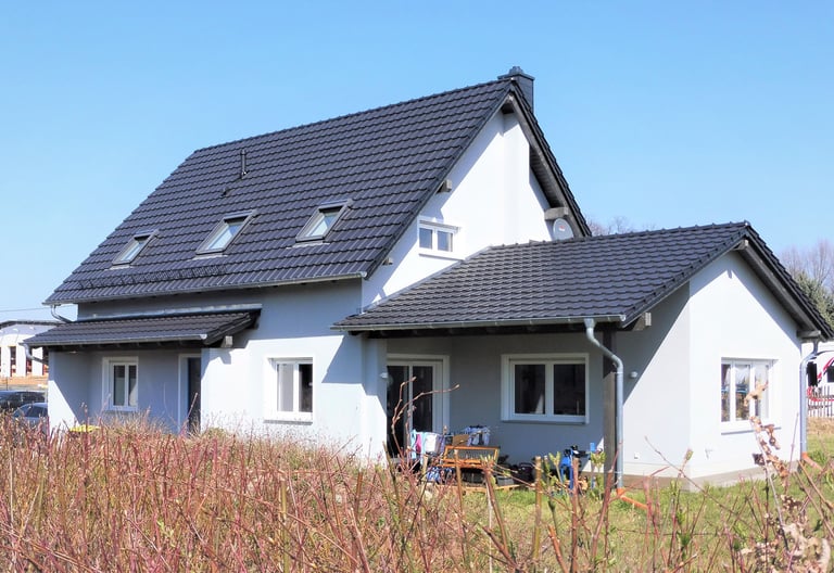 In ruhiger und grüner Idylle südlich von Bernsdorf haben wir für unsere Bauherren ein massives Landhaus realisiert, das Großzügigkeit neu definiert. Auf einem ca. 1.750 m² großen Grundstück trifft klassisches Design auf ein modernes Platzangebot.