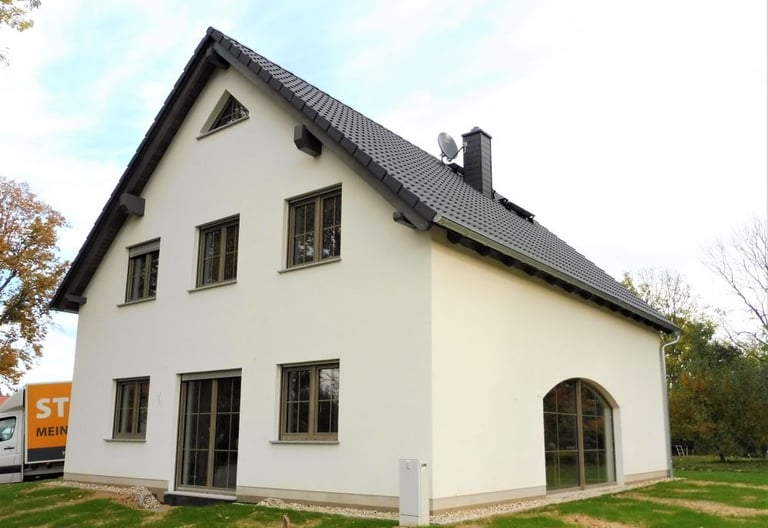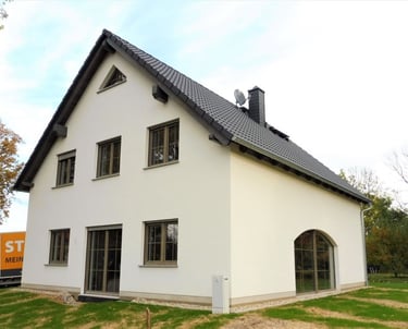 Südlich von Zittau, in idyllischer Ortsrandlage, haben wir für eine vierköpfige Familie ein beeindruckendes Landhaus realisiert. Auf einem weitläufigen, ca. 2.200 m² großen Naturgrundstück trifft hier handwerkliche Präzision auf moderne Effizienz.