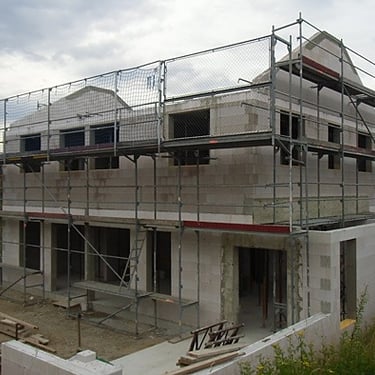 Bauweise: Zweigeschossige Massivbauweise ohne Dachschrägen im Obergeschoss für volle Raumausnutzung.