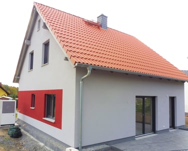 Im neuen Wohngebiet „Hauptstraße“ haben wir den beliebten Haustyp „Jens“ massiv und maßgeschneidert für eine junge Familie realisiert. Ein Beweis dafür, dass moderne Architektur auch auf kompakteren Grundstücken maximale Lebensqualität bietet.