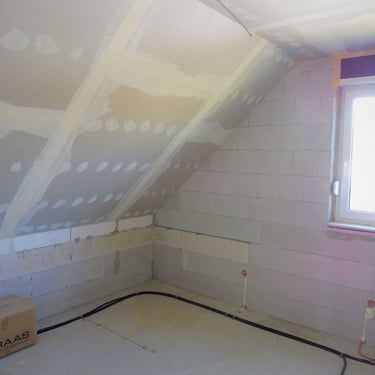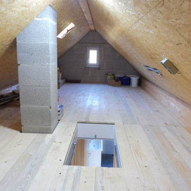 Stauraum-Lösung: Ein ca. 35 m² großer, gedämmter Spitzboden bietet reichlich Platz für alles, was im Alltag nicht im Weg stehen soll.