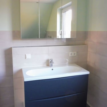 Obergeschoss: Privater Rückzugsbereich mit Elternschlafzimmer, zwei hellen Kinderzimmern und einem Wohlfühlbad inklusive bodengleicher Dusche.