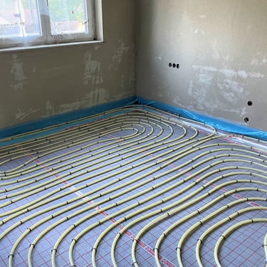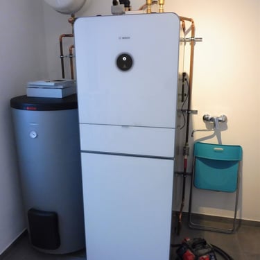 Energie: Effiziente Luft-Wärmepumpe in Kombination mit einer flächendeckenden Fußbodenheizung.