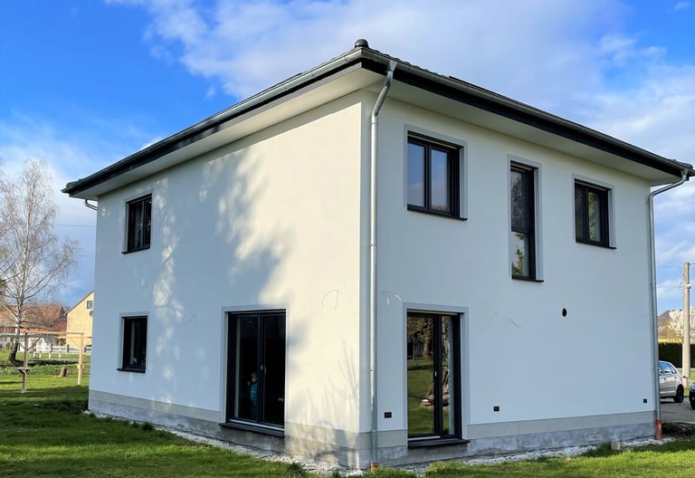In idyllischer Lage von Malschwitz haben wir für eine junge vierköpfige Familie eine massive Stadtvilla realisiert, die durch ihre klare Architektur und zukunftsweisende Technik besticht.